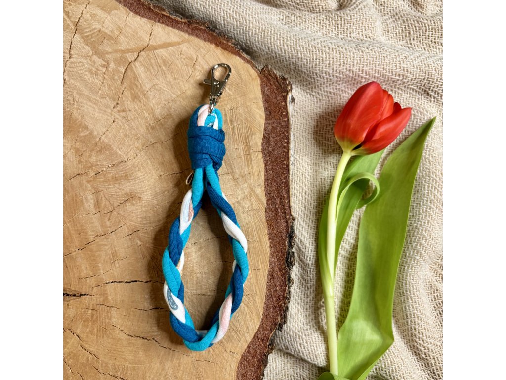 Rozměry: Délka průvleku na ruku je cca 15 cm a šířka klíčenky je cca 2 cm